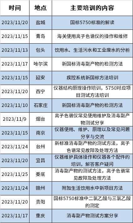 10月1日,5750《生活飲用水標(biāo)準(zhǔn)檢驗方法》開始實施。自來水、環(huán)境監(jiān)測、疾控等行業(yè)飲用水檢測均按照新方法執(zhí)行。為了幫助用戶熟練掌握新方法,盛瀚小班培訓(xùn)在全國各地舉行GB/T 5750.10消毒副產(chǎn)物指標(biāo)相關(guān)內(nèi)容培訓(xùn)。